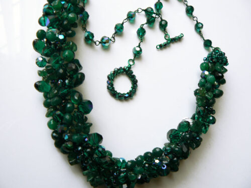 Also on the table, tons and tons of bead weaving pieces with Czech Superduo and Swarovski beads. The sparkle from the Swarovski makes such an impact on these “statement” pieces.